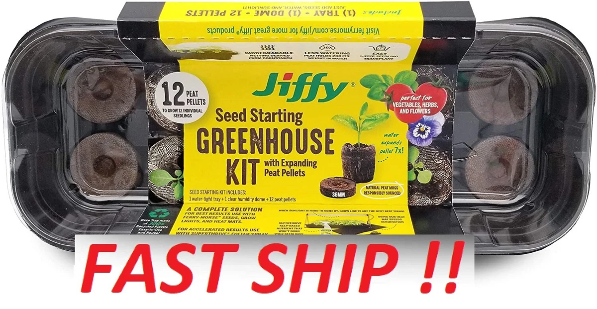 Jiffy Tray 12 Peat Pellet Seed Starter Greenhouse Kit Fast Ship Seedling Plant Ebay
